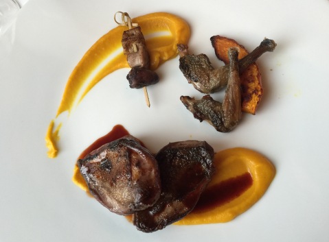 Met zijn prachtige 18e-eeuwse decor en zijn enorme geschiedenis (lees het verhaal van zijn geschiedenis hier), is dit een magische plek om te komen; er zijn weinig restaurants in Parijs waar je zó intens de connectie met de Parijse cultuur voelt. Kippenvel, gaf het me.Zo ook de gerechten van Guy Martin, die op het eerste gezicht geen twee sterren waard lijken, maar op basis van de allerbeste producten zó perfect zijn bereid, dat ze dat zeker zijn. Hun eenvoud – het hoofdgerecht bestond letterlijk enkel uit duif, pompoen en een goddelijke jus – getuigt van zo’n enorm zelfvertrouwen, dat je je afvraagt waarom men elders zoveel tierelantijntjes op de bord meent te moeten leggen. Bewonderenswaardig is het dat Martin helemaal begrijpt dat een plek als Le Grand Véfour om dit soort klassieke gerechten en bereidingen vraagt, en blijkbaar genoeg uitdaging vindt in de perfecte uitvoering.