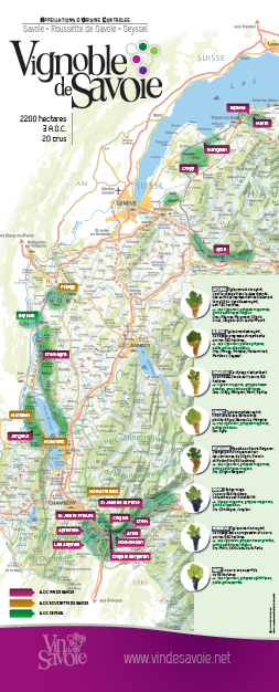 Twee jaar terug werd duidelijk dat vanaf de oogst van 2014 mousserende wijnen uit de departementen Savoie en Haute-Savoie als Crémant de Savoie op de markt konden komen, mits deze voldoen aan het Cahier des Charges (zie ook het artikel ‘Crémant de Savoie komt eraan‘). Aangezien dit ondermeer voorschrijft dat de wijnen minimaal twaalf maanden in de fles sur lie moeten zijn opgevoed (en niet maar 9 maanden zoals bij vele andere Crémants), zijn de eerste Crémants de Savoie net op tijd voor Kerstmis 2015 te koop.Het Cahier schrijft verder voor dat de basiswijnen gemaakt moeten zijn op basis van minimaal 60% autochtone druivenrassen, waarvan minstens 40% jacquère en minstens 20% altesse. Voor de resterende 40% komen naast jacquère en altesse andere lokale variëteiten in aanmerking, zoals mondeuse blanche in Savoie en chasselas en molette in Haute-Savoie. Maar ook met aligoté, chardonnay, gamay en pinot noir mag de assemblage gecompleteerd worden, waarbij het aandeel blauwe druiven dan weer niet meer dan 20% mag bedragen.De voorwaarden wat betreft druivenrassen lijken nogal onoverzichtelijk, maar zijn met zorg en visie opgesteld. Men wil vooral voorkomen dat druiven als chardonnay en pinot noir, klassiek (en buitengewoon geschikt, zo bleek weer eens) voor mousserende wijnen maar niet traditioneel voor Savoie, een te prominente rol gaan spelen. Savoie speelt de kaart van de originaliteit, en terecht, want de directe concurrentie aangaan met Crémant de Bourgogne, Crémant du Jura en billige champagne, lijkt niet slim.(klik op de kaart voor groter beeld – PDF)