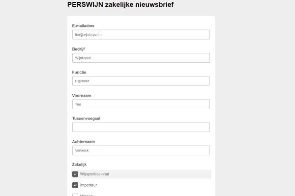 Schrijf u hier in als importeur voor onze zakelijke nieuwsbrief. Graag opgeven met een persoonlijk mailadres en liever geen info@… Vergeet niet uw mailadres te bevestigen. De eerst volgende keer ontvangt u dan automatisch de flesaanvraag.