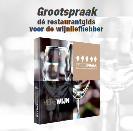 Waar kun je goed eten maar krijgt ook de wijn de aandacht die hij verdient? Voor iedereen die antwoord wil op die vraag is er Grootspraak: dé restaurantgids voor de wijnliefhebber. Lees hier welke adressen in 2016 de titel 'Wijnrestaurant van het Jaar', 'Restaurant van het Jaar', en 'Wijnbar van het Jaar' mogen dragen.