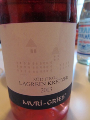 En dan het slot van de dag, het bezoek aan de Unterganznerhof in Kardaun, van Lagrein-specialist Josephus Mayr! Wat een charmante man, wat een passie en wat een wijnen. Als hij ’s avonds niet in zijn muziekband had moeten spelen, hadden we waarschijnlijk tot in de late uurtjes nog gepraat over het boerenbedrijf, de Lagrein en zijn experiment met olijfbomen en olijfolie. We leren onder andere dat Lagrein tot de jaren tachtig van de vorige eeuw eigenlijk voornamelijk rosé gevinifieerd werd, als Kretzer (zie linksonder). De diepdonkere Lagreins waar Südtirol tegenwoordig om bekend staat, zijn een vrij recente ontwikkeling.