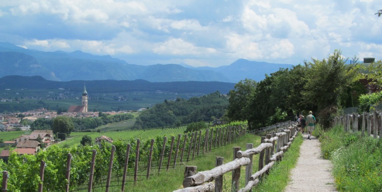 Ik ben in Südtirol, of Alto Adige*, zoals het gebied volgens de Italiaanse kaarten heet. Zes dagen lang trek ik mijn bergschoenen aan, om wandelingen door de heuvels en over bergkammen te maken. Onder leiding van Jeanet Bruining, al bijna 25 jaar specialist in het ‘wijnwandelen’, en samen met zes andere wijnliefhebbers verken ik gedurende een kleine week de omgeving van Terlan en Bozen.