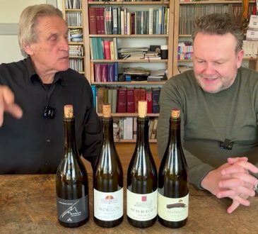Moet het wit zijn of rood? Je denkt aan rood als je naar de worst kijkt, maar stevig en rijk wit zou wellicht beter zijn als je alleen naar de romige risotto en tomaat kijkt. Die zachte pompoen en de boter kunnen gaan botsen met de tannine in een rode wijn. Daarom zetten we het zevenkoppige proefpanel een tweetal witte wijnen voor en twee rode wijnen met – hopelijk – niet te veel tannine van de pinot noir druif. Een mooie Beaujolais van iemand als Jean Paul Brun zou ook zeker het proberen waard zijn, maar die was helaas even niet beschikbaar.De eerste witte wijn is een stuivende sauvignon blanc uit de Appellation Quincy. Een mooie wijn, met frisse, fruitige smaken. Die benadrukt het frisse in het gerecht en vooral de tomaat. Voor het gerecht als geheel net iets te fris, zo oordeelt het proefpanel. De tweede witte wijn die we proeven is even wennen. Het is de Grauer Burgunder Katzebosch 2009 van Weingut Jürgen Leiner uit de Pfalz (prijscategorie 7, Imperial Wijnkoperij). In de geur heeft hij iets van gebrande noten, hout en boter, in de smaak rijp fruit, veel body, lichte bitters en mooie zuren.