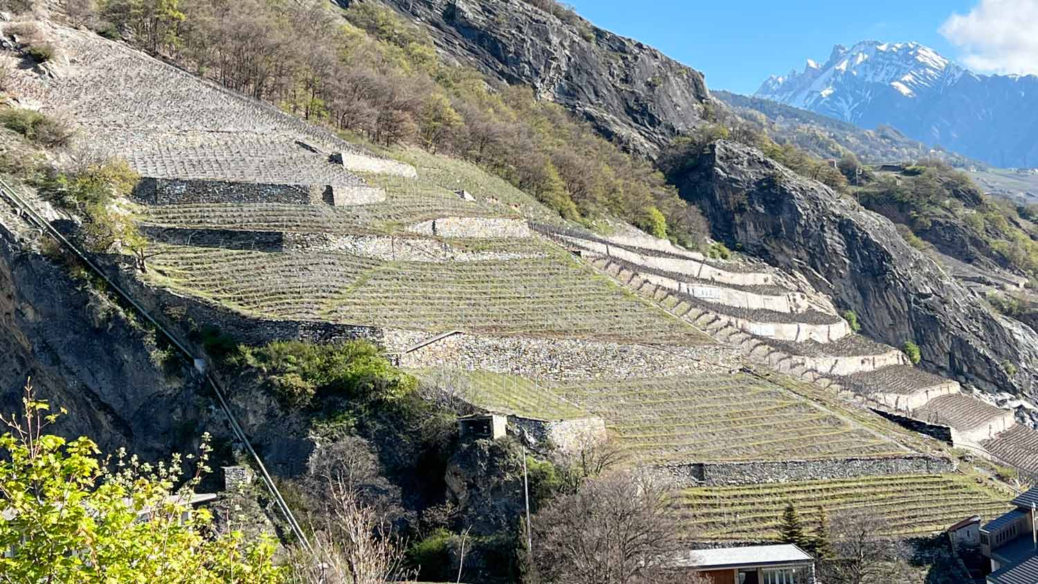 Alpiene wijngaarden in de Zwitserse Rhônevallei (Foto: Bart de Vries